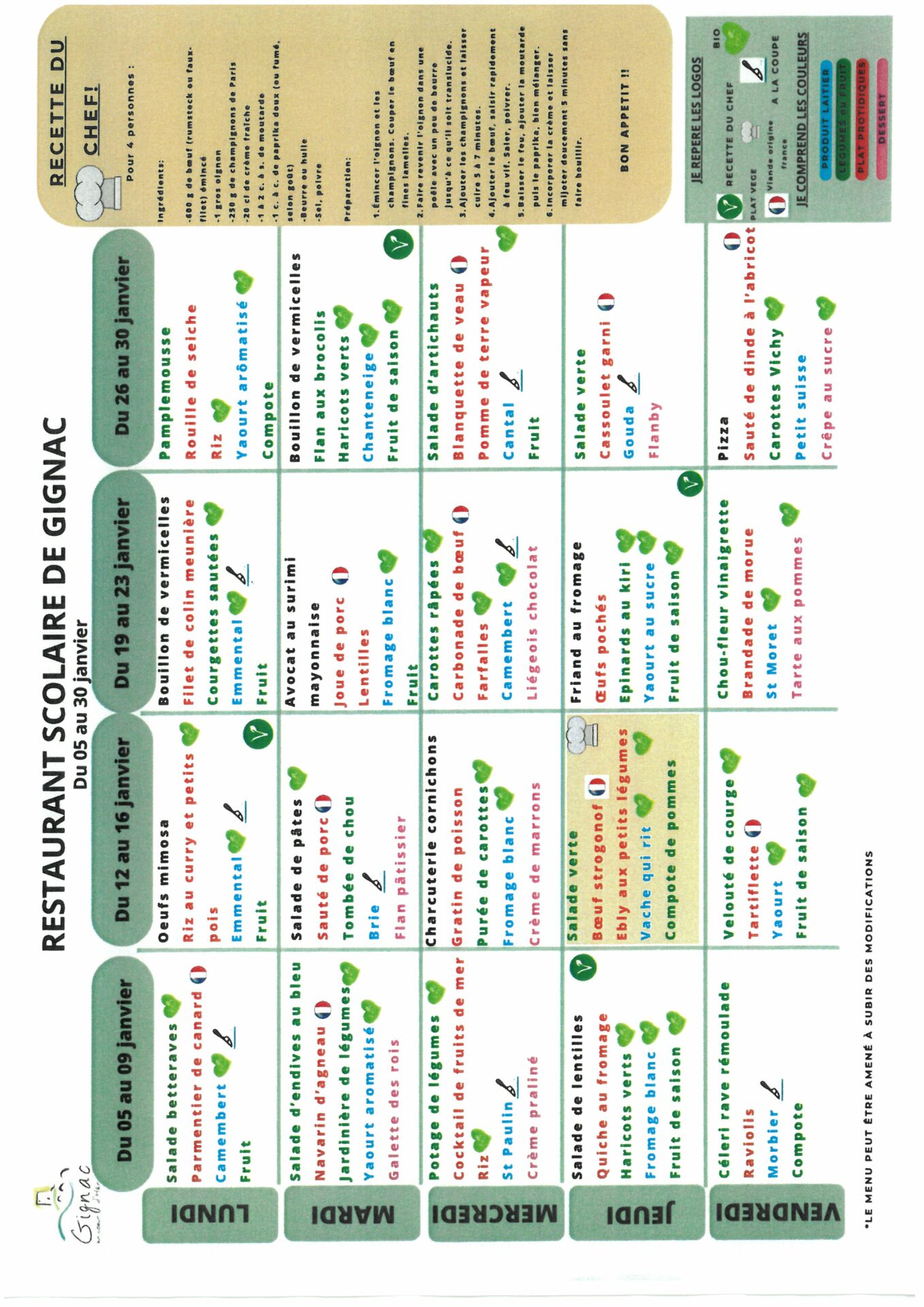 Chaque mois, le responsable du restaurant scolaire vous propose une de ses recettes favorites ♥ ( partie en haut à droite des menus)